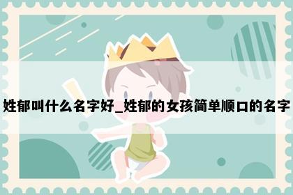 郁姓简单顺口的女孩名字,是每个家长都希望能为自己的宝宝取一个优雅、大气的名字。接下来,云鹤斋算命网将为您推荐一些简单顺口的女孩名字,希望能为您的宝宝取得一个美丽的名字。